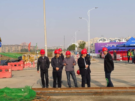 王馬青一行首先來到灣北二期項目,全程查看了道路建設收尾情況;在市區快速路環線工程土建02標段,王馬青一行現場聽取了標段施工進展、人員配備、存在困難等情況介紹,對市區快速路環線工程在這么短時間內已出形象表示肯定。