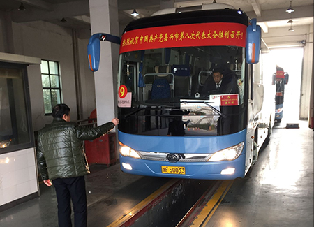為全力保障黨代會(huì)順利進(jìn)行,國(guó)鴻汽運(yùn)公司高度重視,精心挑選了15輛47座以上全新旅游大巴車(chē)和15名專(zhuān)職駕駛員,專(zhuān)門(mén)印發(fā)了《黨代會(huì)接待任務(wù)工作須知》,制作了黨代會(huì)統(tǒng)一標(biāo)語(yǔ)張貼于車(chē)頭醒目位置,組織駕駛員參加安全和服務(wù)禮儀培訓(xùn),切實(shí)提高駕駛員的安全意識(shí)和服務(wù)意識(shí),確保全體駕駛員以良好的精神面貌、熱情的服務(wù)態(tài)度,認(rèn)真做好本次接送服務(wù)工作。同時(shí),公司還對(duì)所有參與接送任務(wù)的大巴車(chē)進(jìn)行了全面系統(tǒng)的安全檢查和清潔保養(yǎng)。此外,公司還安排專(zhuān)人配合做好現(xiàn)場(chǎng)指揮和車(chē)輛調(diào)度工作。