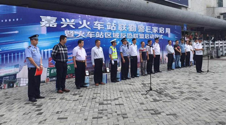 在啟動(dòng)儀式上,嘉興市反恐怖工作領(lǐng)導(dǎo)小組辦公室常務(wù)副主任、市公安局黨委委員、副局長李新寶,嘉興市南湖區(qū)委常委、區(qū)反恐怖工作領(lǐng)導(dǎo)小組副組長、市公安局黨委委員、區(qū)公安分局局長張順榮為嘉興火車站聯(lián)勤警E家揭牌,并為公交公司在內(nèi)的17家聯(lián)盟單位授牌。