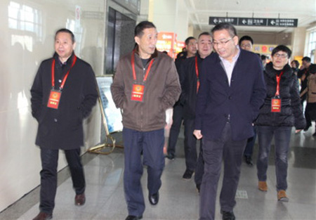 1月19日,市政協副主席李躍帶隊,嘉興市政協委員一行20余人到客運中心視察工作,集團公司黨委副書記李海明及相關人員陪同視察。