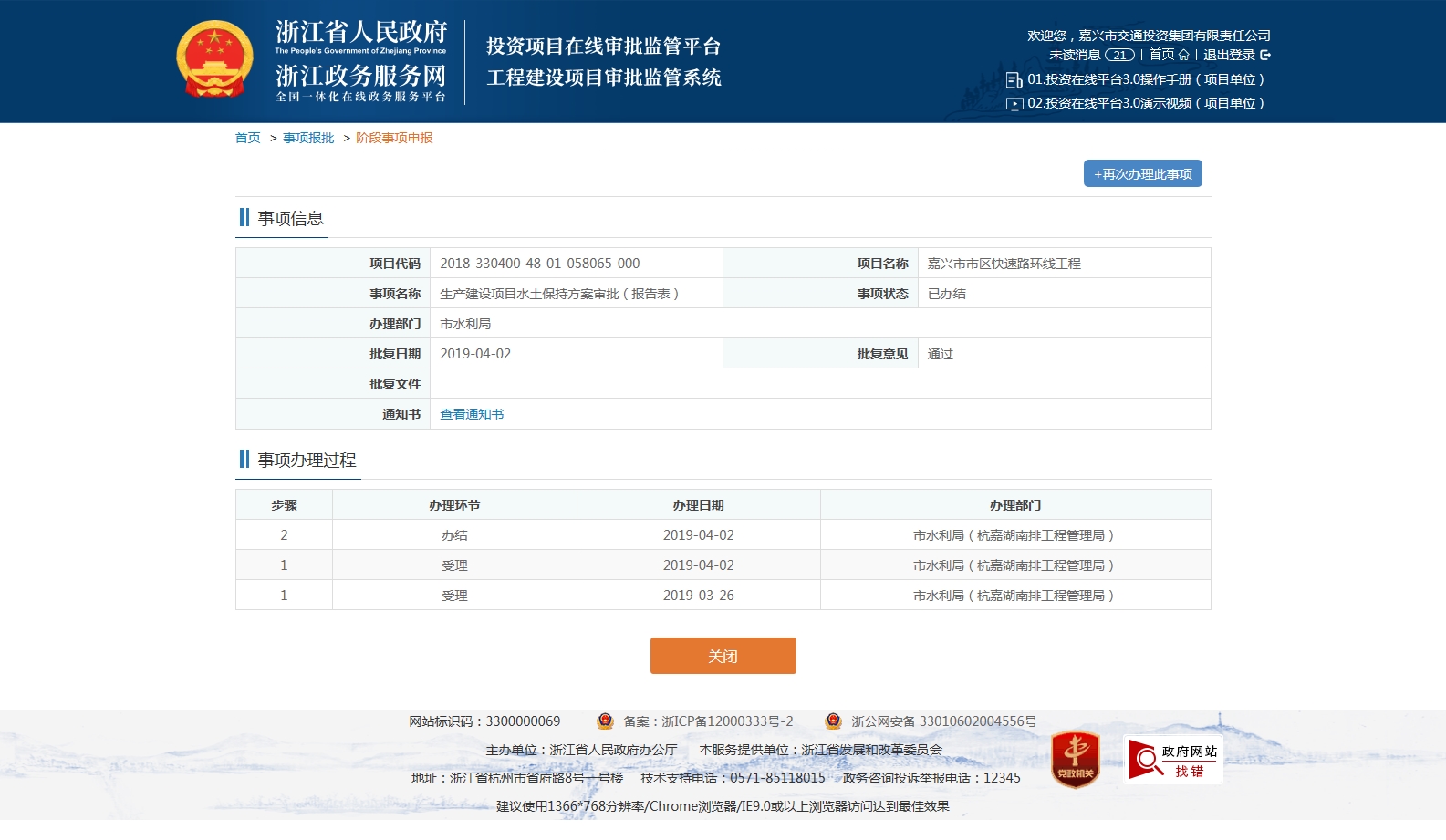 嘉興市市區(qū)快速路環(huán)線工程一期生產(chǎn)建設項目水土保持方案審批
